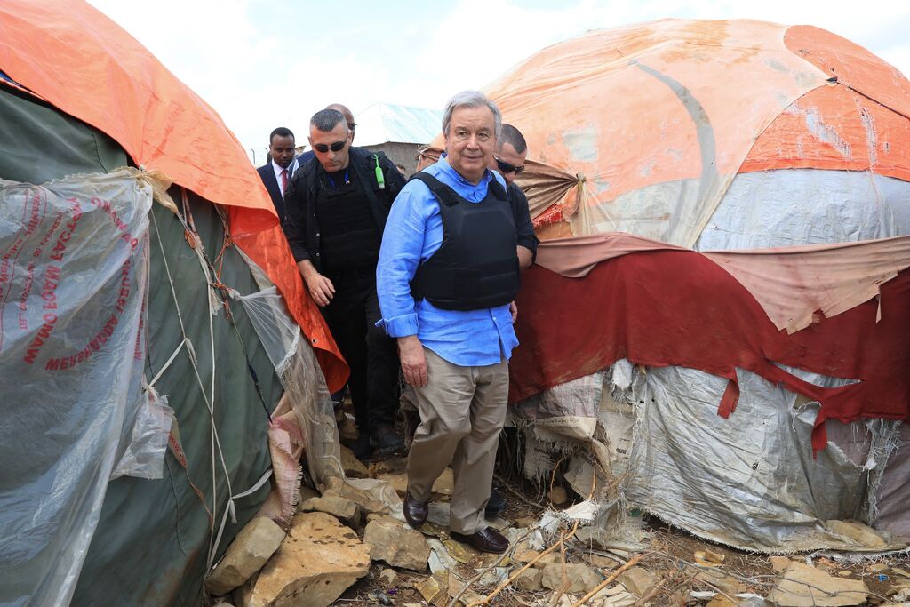 | Le secrétaire général de l'ONU, Antonio Guterres, est en déplacement en Somalie. Le mardi 11 avril 2023, il a visité un camps de réfugiés situé à Mogadiscio, la capitale. |