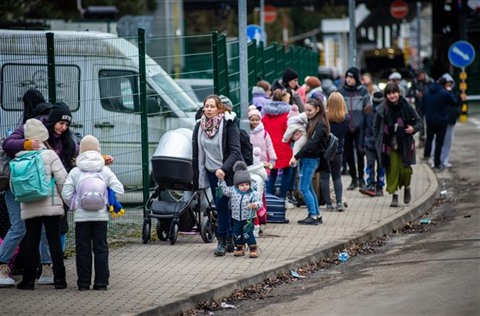 | Des réfugiés ukrainiens arrivent à Ubla, dans l'Est de la Slovaquie, le 25 février. |