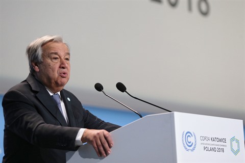| Le secrétaire général de l'ONU, Antonio Guterres, s'exprime lors de la 24e Conférence des Nations unies sur le changement climatique, le 3 décembre en Pologne. |