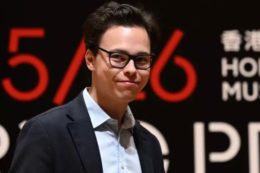 | Le chef d'orchestre finlandais Tarmo Peltokoski, le 4 juillet à Hong Kong (Chine). |