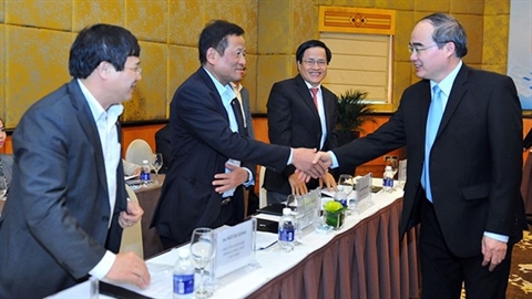 | Le président du FPV, Nguyên Thiên Nhân (droite), rencontre des scientifiques vietnamiens lors de la conférence du VIFOTEC, le 18 mars à Hanoi. |