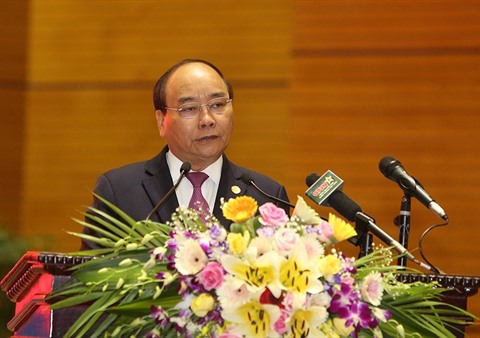 | Le Premier ministre Nguyên Xuân Phuc prend la parole lors de la conférence politico-militaire de l’Armée, le 28 juin à Hanoï. |