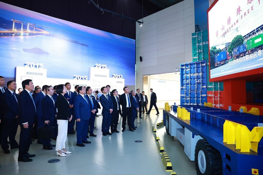 | Le Premier ministre Pham Minh Chinh a visité l'exposition thématique sur le développement et l’ouverture de Pudong à la Salle d'exposition de Pudong. |