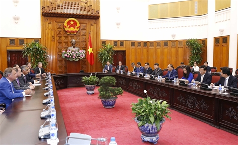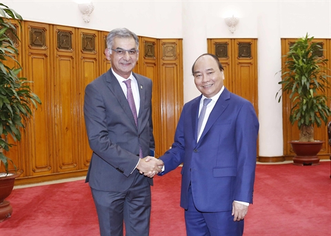 | Le Premier ministre Nguyên Xuân Phuc (droite) a reçu le PDG Standard Chartered pour le Vietnam Nirukt Sapru. |