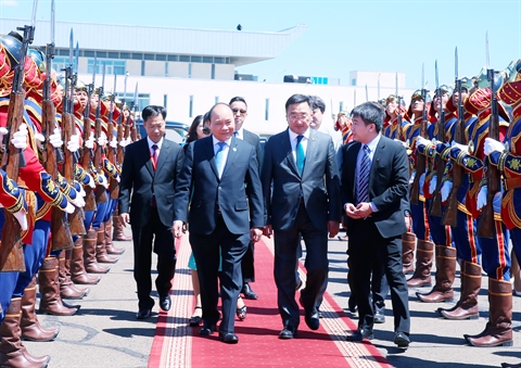 | La visite officielle en Mongolie du PM Nguyên Xuân Phuc (1er plan, à gauche) a contribué à dynamiser les relations d’amitié traditionnelle Vietnam-Mongolie. |