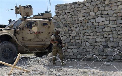 | Un soldat américain patrouille à Achin dans la province de Nangarhar, le 15 avril 2017. |