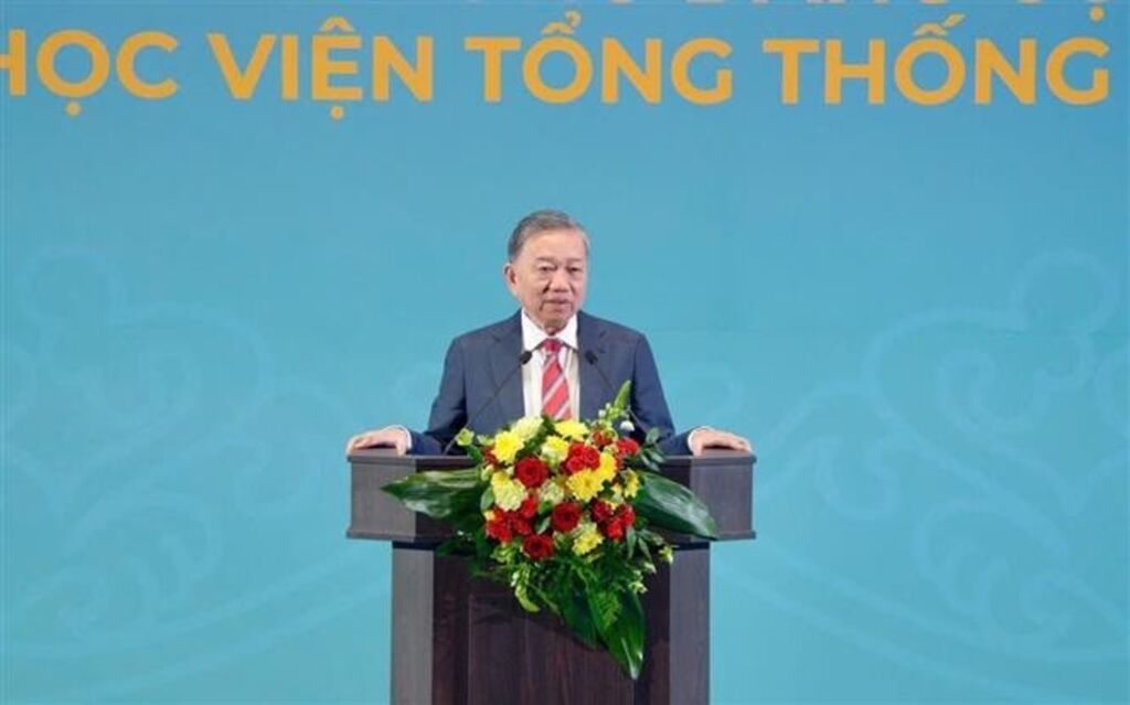 | Le secrétaire général du Parti communiste du Vietnam (PCV), Tô Lâm, prononce un discours à l'Académie présidentielle