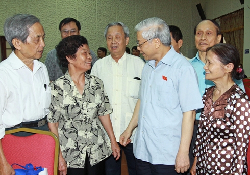 | Le secrétaire général du PCV rencontre le 29 juin les électeurs de l'arrondissement de Hoàn Kiêm (Hanoi). |
