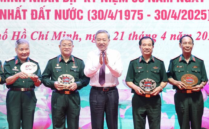 | Le secrétaire général du Parti, Tô Lâm, rencontre à Hô Chi Minh-Ville une délégation de héros et de vétérans de diverses forces ayant directement participé à la campagne de Hô Chi Minh en 1975. |