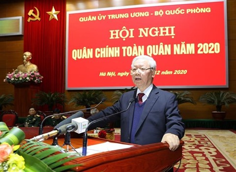 S’adressant à la conférence politico-militaire de l’armée en 2020 à Hanoï, le leader a hautement apprécié les réalisations de la Commission militaire centrale, du ministère de la Défense et l’ensemble des cadres et soldats de l’armée en 2020, contribuant à l’accomplissement des tâches fixées par le XIIe Congrès national du Parti.