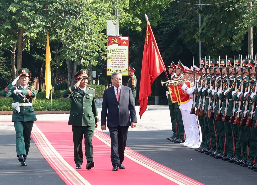| Le secrétaire général Tô Lâm passe en revue la garde d’honneur de l’Armée populaire du Vietnam. |