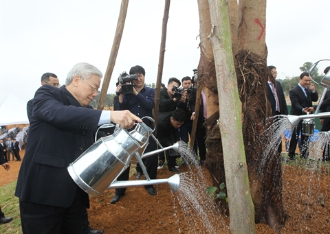 Le secrétaire général Nguyên Phu Trong a salué l’initiative d’organiser la fête de plantation d’arbres dans le technopôle de Hoà Lac, une pépinière des hautes technologies du pays.