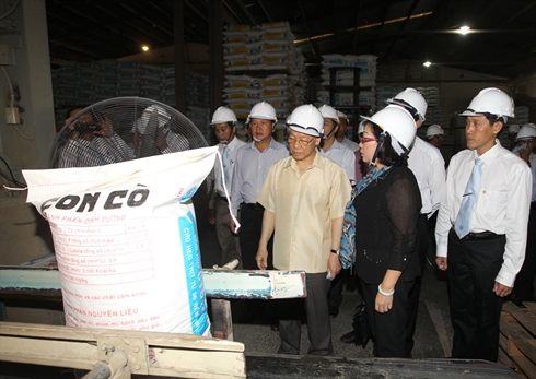 Le même jour, Nguyên Phú Trong a visité la Compagnie générale d'industrie alimentaire de Dông Nai (DOFICO) et la Société de production d'aliments pour animaux Vietnam-France (PROCONCO).