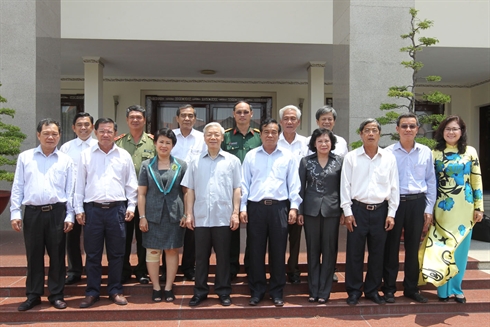 | Le chef du PCV, Nguyên Phú Trong (4e à gauche, 1er rang), et les autorités provinciales de Dông Nai. |