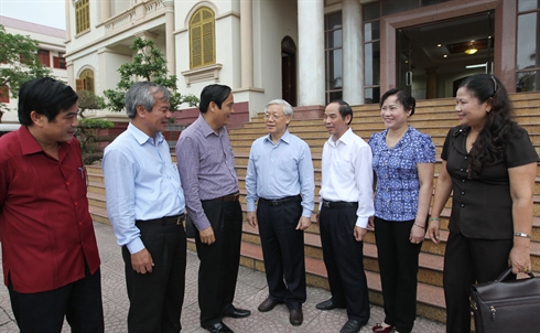 | Le secrétaire général du PCV, Nguyên Phu Trong (centre), et les dirigeants de la province de Hà Tinh (Centre). |