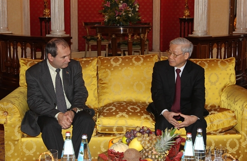 | M. Nguyên Phu Trong (droite) a reçu le 22 janvier le secrétaire national du Parti de refondation communiste (PRC), Paolo Ferrero |