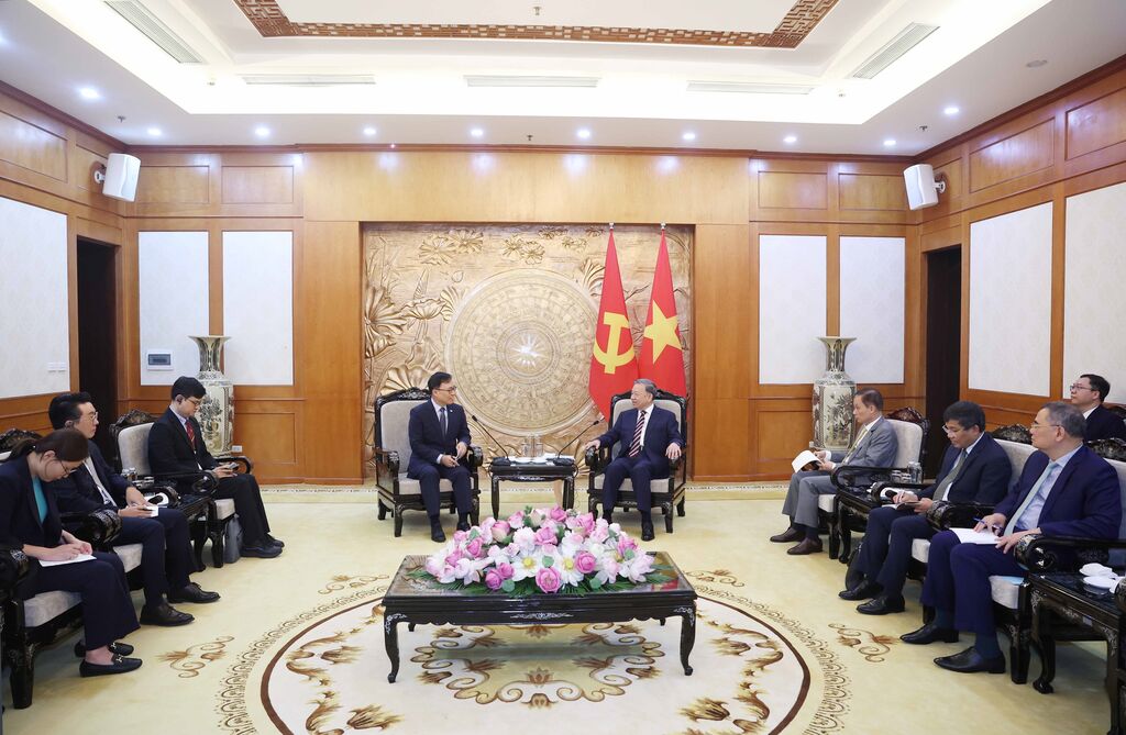 | Le secrétaire général du Parti communiste du Vietnam, Tô Lâm (droite), et l’ambassadeur de République de Corée au Vietnam, Choi Young Sam. |