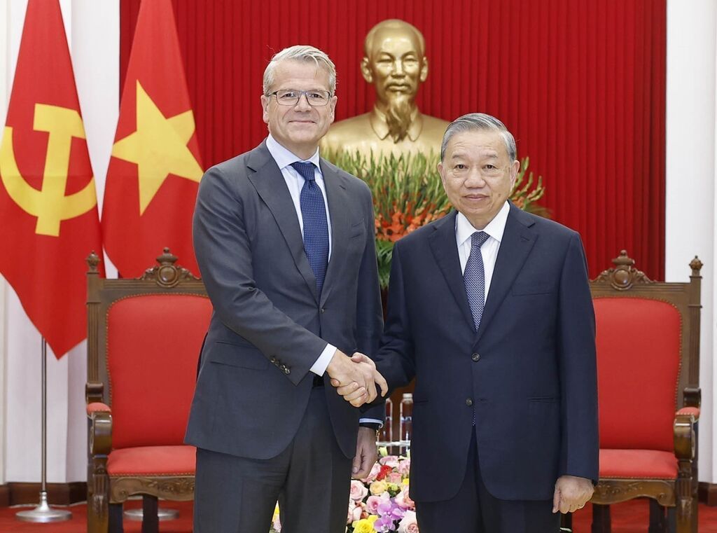 Le secrétaire général du Pari communiste du PCV, Tô Lâm, s'est réjoui du développement positif du Partenariat global Vietnam - Danemark (établi en 2013) et du Partenariat stratégique vert entre les deux pays (établi en novembre 2023), qui constituent un moteur essentiel pour promouvoir le développement solide des relations bilatérales dans tous les domaines, en faveur d'un développement vert et durable.
