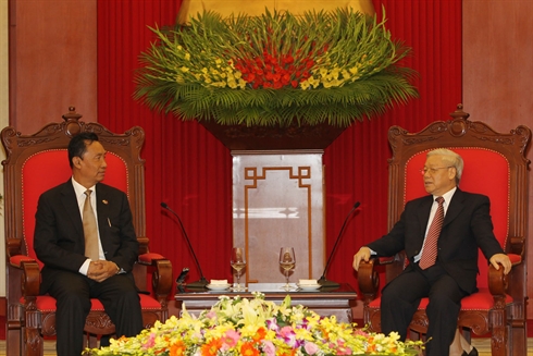 | Rencontre entre le le secrétaire général du PCV, Nguyên Phu Trong (droite), et le président du Parlement birman, également président du Parti de l’Union de solidarité et de développement, |