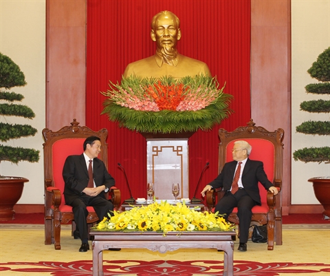 | Le secrétaire général du PCV Nguyên Phu Trong a rencontré le 22 décembre à Hanoi Liu Qibao, membre du Bureau politique du Comité central du PCC. |