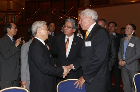 Le chef du PCV a rappelé les jalons des relations bilatérales, notamment le développement actif durant les 20 années ayant suivi la normalisation des relations et l’établissement du Partenariat intégral, tout en soulignant l’importance et le fondement des relations entre les deux peuples. Il a remercié les amis américains d’avoir bien soutenu le Vietnam.