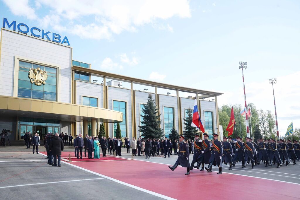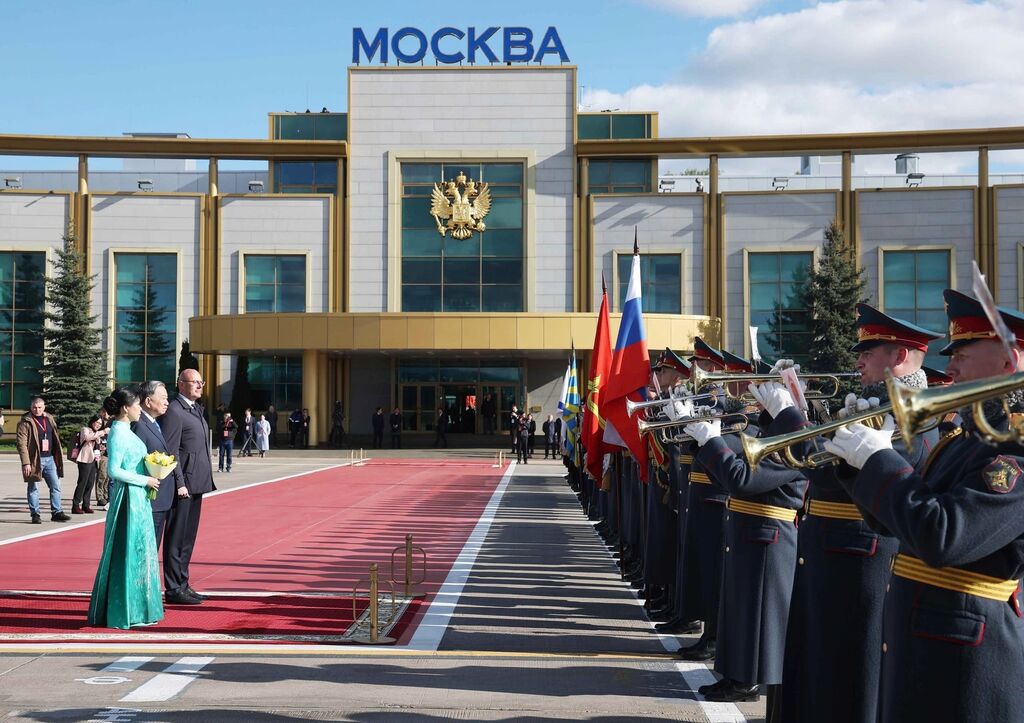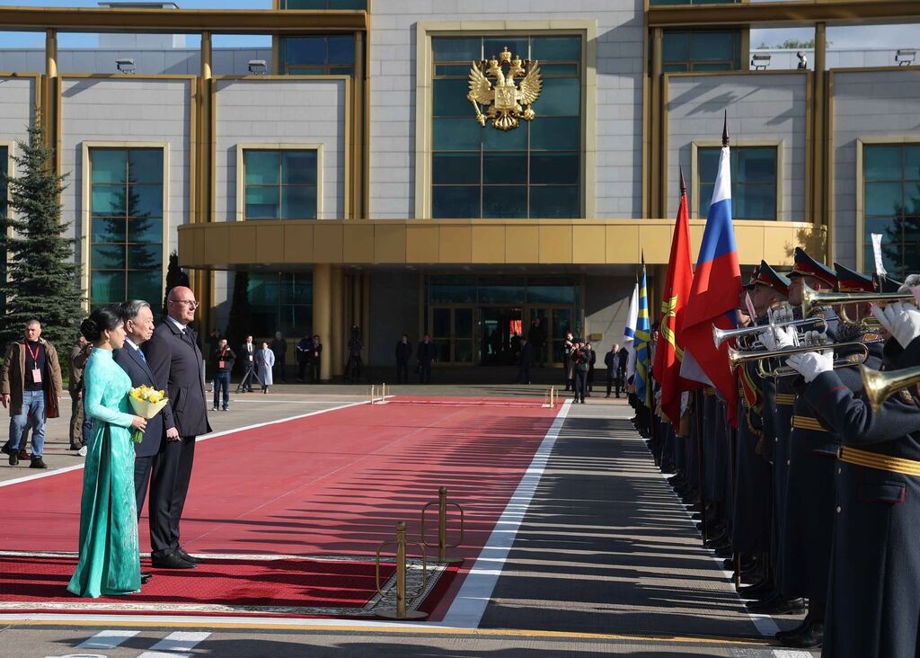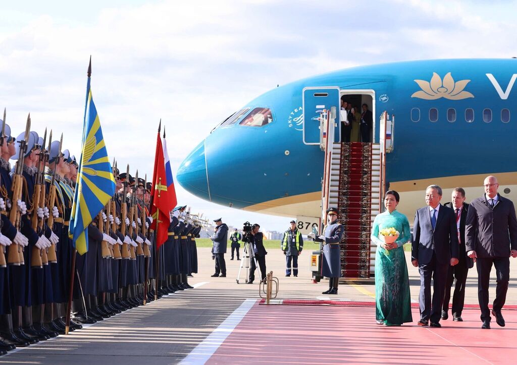 | La cérémonie d'accueil officielle du secrétaire général du Parti, Tô Lâm, et de son épouse à l'aéroport Vnukovo 2. |