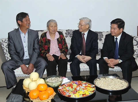 | Le leader du PCV Nguyên Phu Trong (2e à droite) s'est rendu visite à une famille dans le village de Da Ying Cun. |