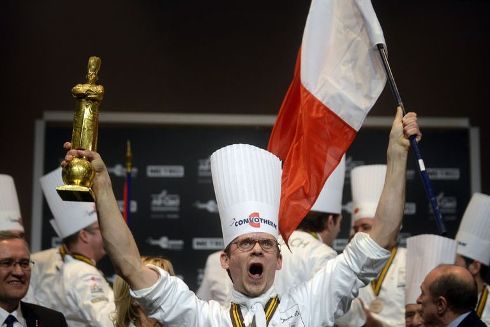 À bientôt 87 ans, Paul Bocuse, souriant mais fatigué, a proclamé la victoire. Mais c'est le sénateur-maire de Lyon Gérard Collomb qui a remis au vainqueur le précieux trophée : une statuette à l'effigie du célèbre chef qui a lancé en 1987 ce concours organisé tous les deux ans lors du Salon international de la gastronomie.