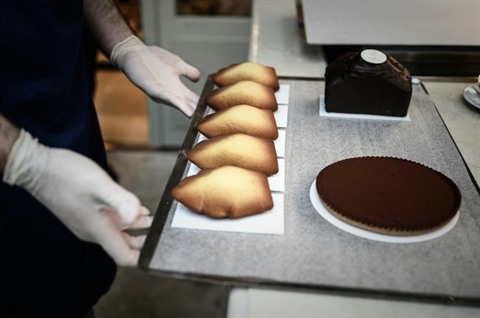 | Le chef pâtissier du Ritz François Perret dans la cuisine de l'hôtel parisien. |