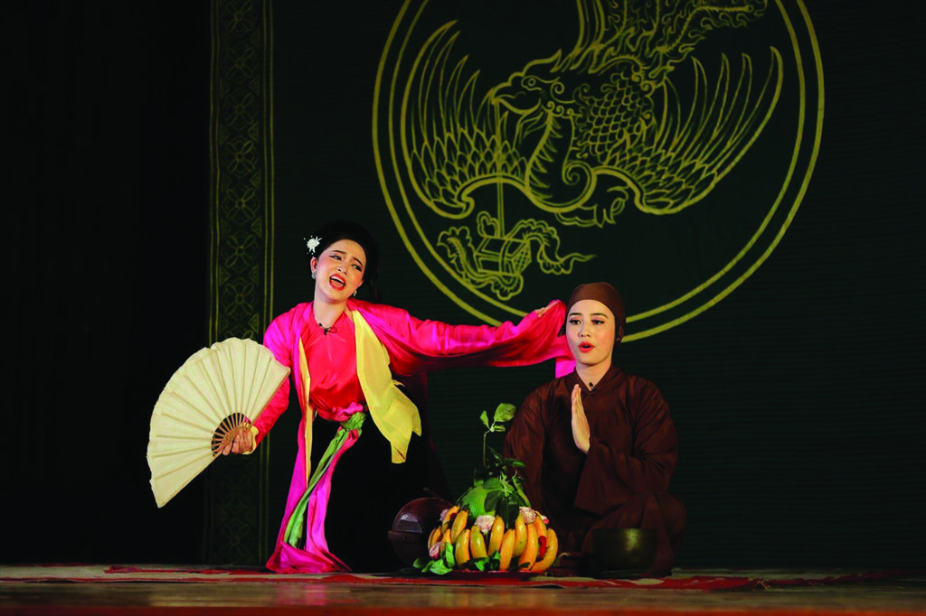 | Une scène de la pièce classique "Quan Âm Thị Kính" (Déesse de la Miséricorde). |