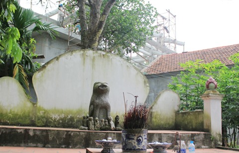 | Le chien en pierre au village de Dich Vi, district de Dan Phuong, Hanoï. |