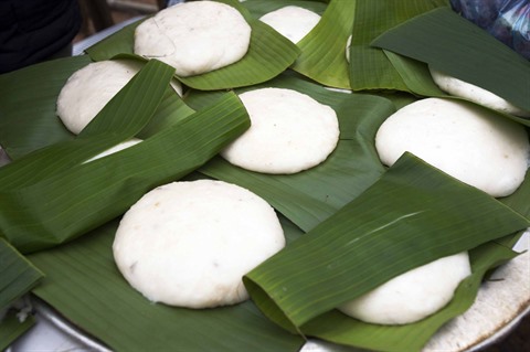 | Les "bánh chung" et "bánh dày", symboles du Ciel et de la Terre. |