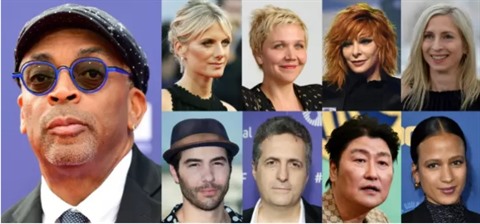 | Photo montage des membres du jury (de gauche à partir du haut) : Spike Lee, Mélanie Laurent, Maggie Gyllenhaal, Mylène Farmer, Jessica Hausner, Tahar Rahim, Kléber Mendonca Filho, Song Kang-ho et Mati Diop. |