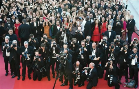 | Public et photographes devant le tapis rouge à Cannes, le 19 mai 2018. |