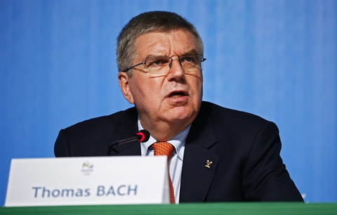 | Le président du CIO, Thomas Bach, lors d'une conférence de presse le 4 août à Rio. |