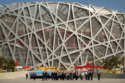 | Le stade Olympique de Pékin, le 24 mars 2015 lors de la visite du Comité d'évaluation de la candidature de la capitale chinoise pour les JO-2022 d'hiver. |