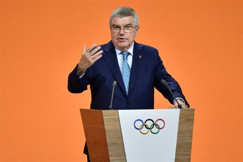 | Le président du Comité international olympique, Thomas Bach, lors d'une allocution à Lausanne, le 24 juin. |