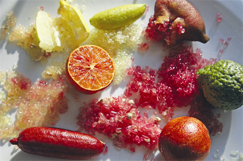 | Différentes variétés de citron caviar, à Eus Raymond Roig. |