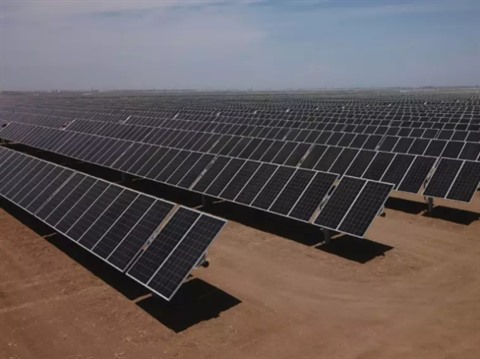 | Des rangées de panneaux solaires à Huron, en Californie, le 23 juillet 2021. |