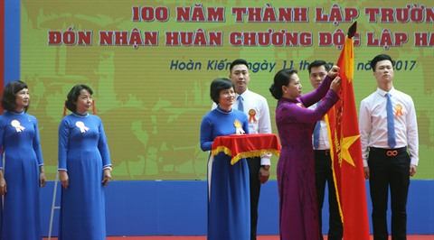 Ce samedi 11 novembre 2017, de nombreux élèves du collège Trung Vuong sont présents dans la grande cour dès 6h30 du matin. Mais ce n’est pas un samedi comme d’habitude : aujourd’hui, ce fameux collège fête son centenaire et la réception de l'Ordre d'Indépendance de première classe de l’État.