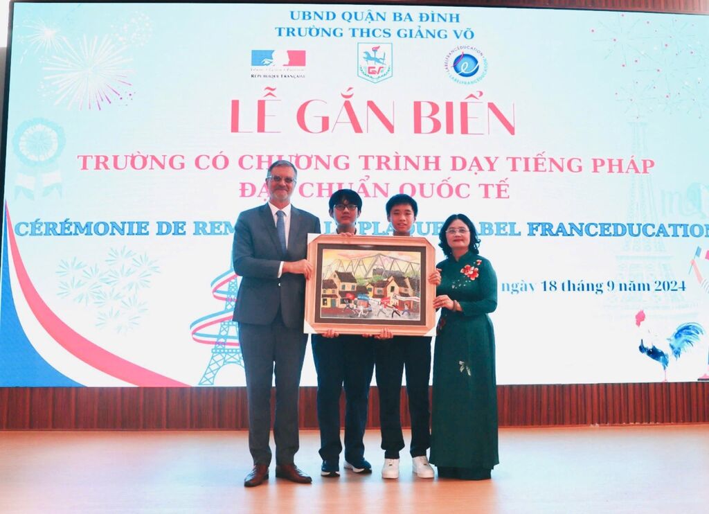 Le matin du 18 septembre, le collège Giang Vo a organisé une cérémonie de réception du LabelFrancÉducation, une marque d'excellence décernée aux meilleurs établissements bilingues pour la qualité de leur enseignement du français.
