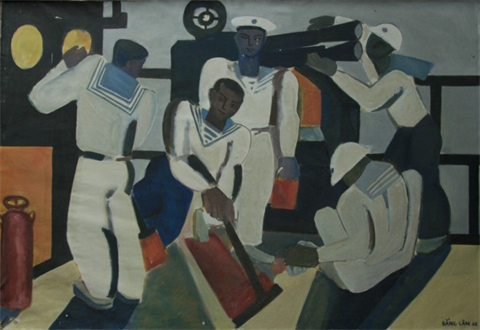 Comme Bang Lâm a vécu aux côtés des soldats des troupes de la Marine, il comprend mieux que quiconque leurs difficultés, leurs peines, leurs joies. Il se souvient de scènes de lutte contre les tempêtes ou la chaleur, de partage de quelques légumes tirés du minuscule jardin, de lecture en groupe du courrier fraîchement arrivé du continent. «Mes œuvres de 1972 à 1989 se concentrent sur les soldats de Marine, leurs sentiments et leur beauté. J’en suis très fier», confie M. Lâm.