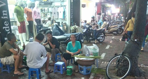 | Une marchande de côm près du village de Vòng, à Hanoï. |