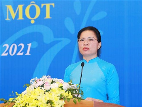 Hà Thi Nga, membre du Comité central du Parti, présidente du Comité central de l’Union des femmes du Vietnam, a souligné qu’au cours des huit premiers mois de 2021, son Union et ses antennes avaient activement participé à la réponse au COVID-19 en encourageant les membres à s’efforcer d’effectuer le "double objectif".