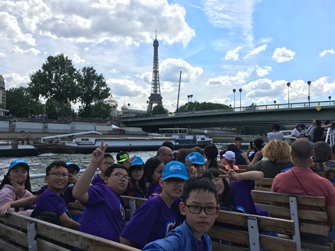 | Les élèves vietnamiennes en bateau-mouche à Paris. |