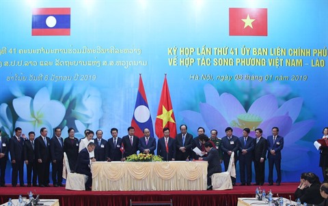 | Signature des accords de coopération entre le Vietnam et le Laos, le 6 janvier à Hanoï. |