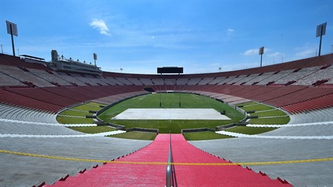 | Los Angeles Memorial Coliseum à Los Angeles, où pourraient se dérouler les Jeux Olympique 2028, le 9 mai. |