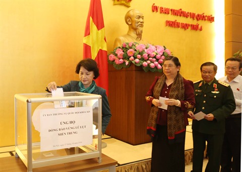| La présidente de l'AN Nguyên Thi Kim Ngân a déclenché le mouvement de collecte de fonds au sein du Comité permanent pour soutenir les populations du Centre. |