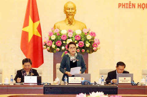 | La présidente de l’Assemblée nationale, Nguyên Thi Kim Ngân (debout) lors de la 22e réunion du Comité permanent de l’Assemblée nationale, le 12 mars à Hanoï. |
