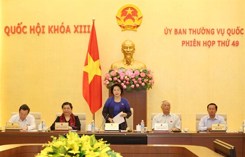 | La présidente de l'AN, Nguyên Thi Kim Ngân (debout), a présidé la séance d'ouverture de la 49e session du Comité permanent de l'AN, le 13 juin à Hanoi. |